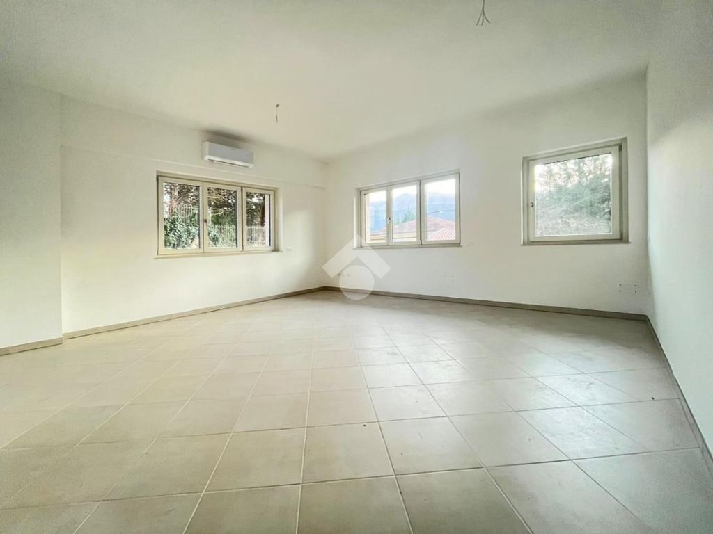 Internamente presenta pavimentazione in gres di colore grigio, infissi doppio vetro, internamente in legno ed esternamente in pvc, riscaldamento centralizzato a pavimento e impianto di climatizzazione.